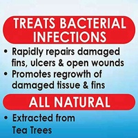 MELAFIX smooths the transition from store to home by reducing the risk of your fish developing a disease. The fish you bought may already carry a disease. Disease is often difficult to detect, particularly in its early stages. To treat these fish and reduce the risk of contaminating other fish use MELAFIX, an all natural treatment. Bacterial disease destroys fish tissue. MELAFIX, heals open wounds abrasions, treats fin and tail rot, eye cloud, mouth fungus and promotes re-growth of damaged fin rays & tissue. Will not adversely affect the biological filter, alter the pH, or discolor water. Safe for reef aquariums and live plants. For use in fresh or salt water aquariums.