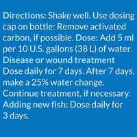 Shake well. Remove activated carbon if possible. Add 5ml per 38L of aquarium water.