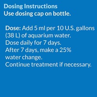 Add 5ml per 38L of aquarium water. Dose daily for 7 days. After 7 days, make a 25% water change. Treatment can be continued if necessary.