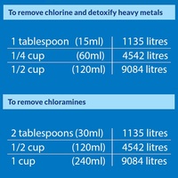 - To remove chloramines: Add 10mL per 378L of pond water.