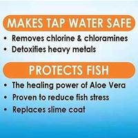 Also works instantly to remove chlorine and chloramines from tap water. Neutralizes heavy metals. Use when starting a new aquarium, adding or changing water and adding fish. Scientifically proven to reduce fish stress by 40%. Scientifically proven to heal wounds and promote regeneration of damaged fish tissue.