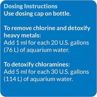 - To remove chlorine and detoxify heavy metals add 1 ml per 76L of tap water being treated.