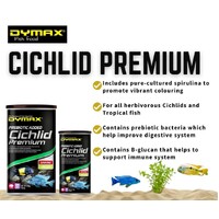 Dymax Cichlid Premium fish food is tailored specifically for Malawi and Tanganyika cichlids. Packed with a rich blend of high-quality vegetable content provides a complete and balanced diet that promotes vibrant coloration and overall well-being. Your cichlids will thrive on this premium fish food.