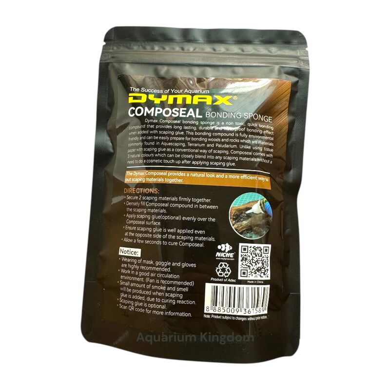 Dymax Composeal Bonding Sponge is a non toxic, quick bonding compound that provides a long lasting, durable and waterproof bonding effect when added with scaping glue. This bonding compound is fully environmentally friendly and can easily be prepared for bonding woods and rocks which are materials commonly found in Aquascaping, Terrarium and Paludarium. Unlike using tissue paper with scaping glue as a conventional way of scaping, Composeal comes with 3 natural colours which can be closely blended into any scaping materials without the need to do a cosmetic touch up after applying scaping glue.