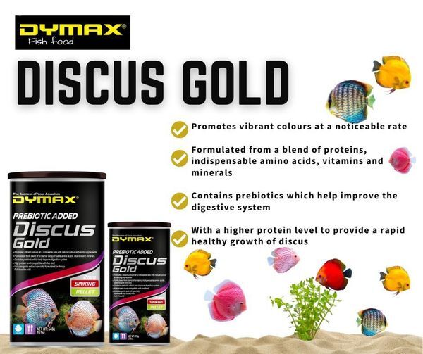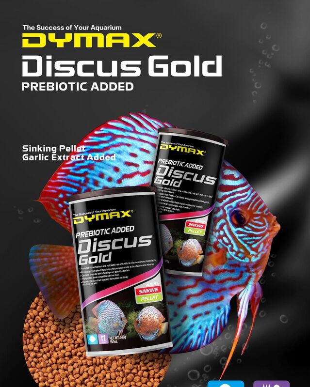 Dymax Discus Gold is specifically developed with a higher protein level to promote the rapid and healthy growth of discus, along with improved body structure and excellent appearance and colour. These fish have a unique eating habit and are known to be fussy eaters, therefore Discus Gold pellets are manufactured with lots of natural flavour attractants and premium ingredients to offer maximum acceptance.