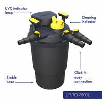 Pressure-Flo 7500 is for ponds up to 7500L and comes complete with a 13-watt UVC lamp, 4 filter foams and 1.6kg of BioRock.