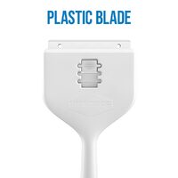 - Easily switch between metal blade and soft pad. Simply slide the cartridge out of the scraper head, flip, and re-insert