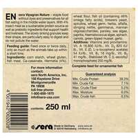 - This product belongs to the "sera Nature" product range, which does not require any dyes nor preservatives. A varied diet with ingredients close to nature is the best protection against deficiencies, and supports the health and liveliness of the fish. The Nature food types therefore contain natural ingredients such as Spirulina, Krill or sustainable insect meal from soldier fly larvae (Hermetia). The signets on the front side of the package highlight these ingredients and their amounts in the food.