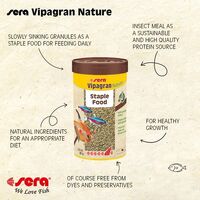 Sera Vipagran Nature is the staple food consisting of gently manufactured soft granules without dyes and preservatives for all fish eating in the middle water layers.