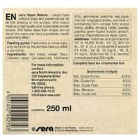 This product belongs to the "Sera Nature" product range, which does not require any dyes or preservatives. A varied diet with ingredients close to nature is the best protection against deficiencies and supports the health and liveliness of the fish. The Nature food contains natural ingredients such as Spirulina, Krill or sustainable insect meal from soldier fly larvae (Hermetia). The signets on the front side of the package highlight these ingredients and their amounts in the food.