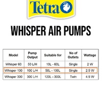 • 1 x Tetra Whisper 100 aquarium air pump - single outlet